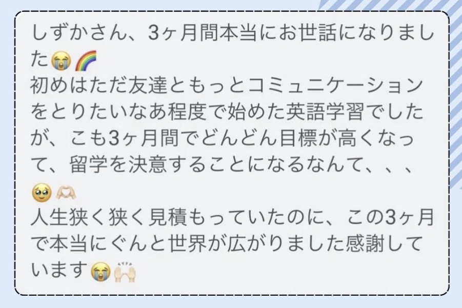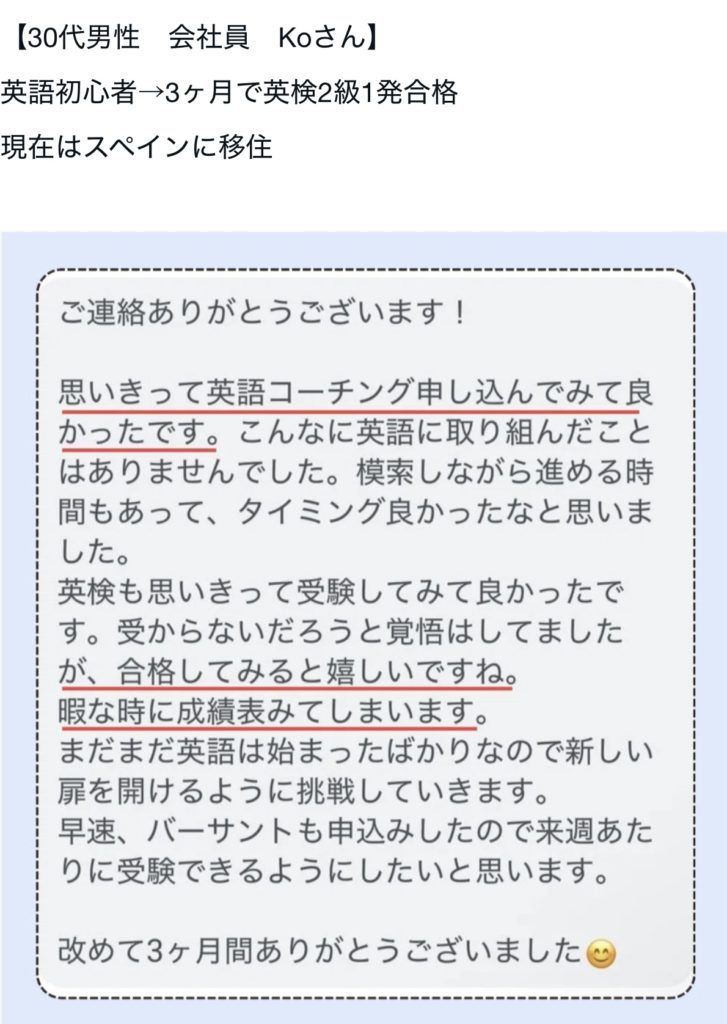 自分に合った正しい学習法を知れば英語は驚くほど上達することを実感しました。