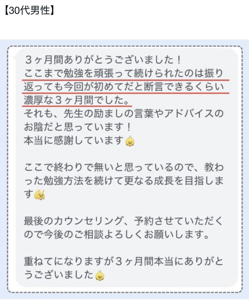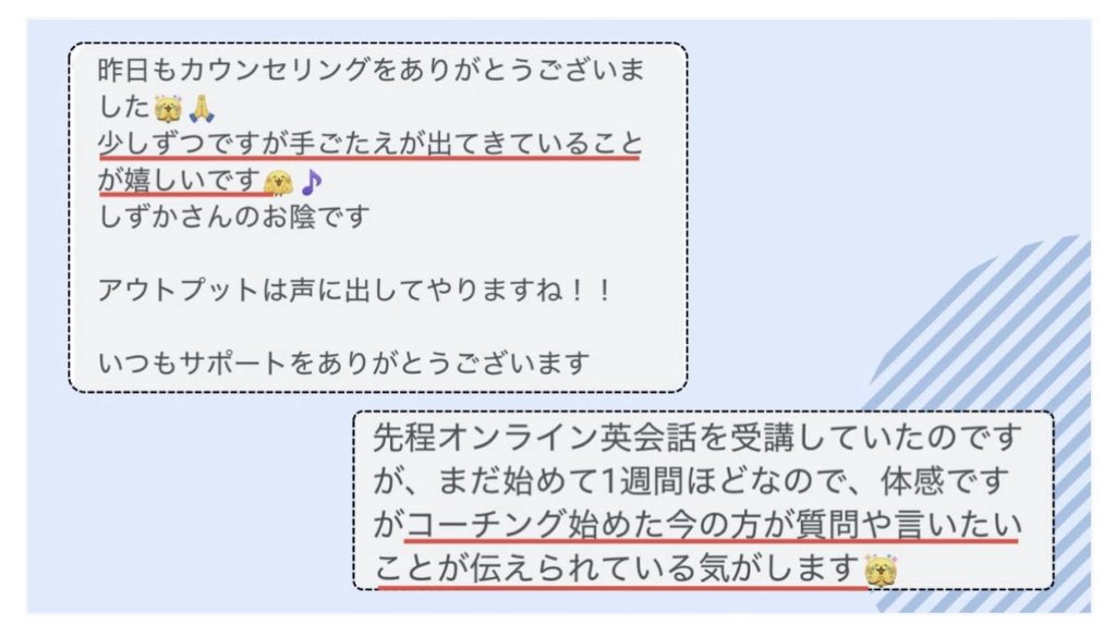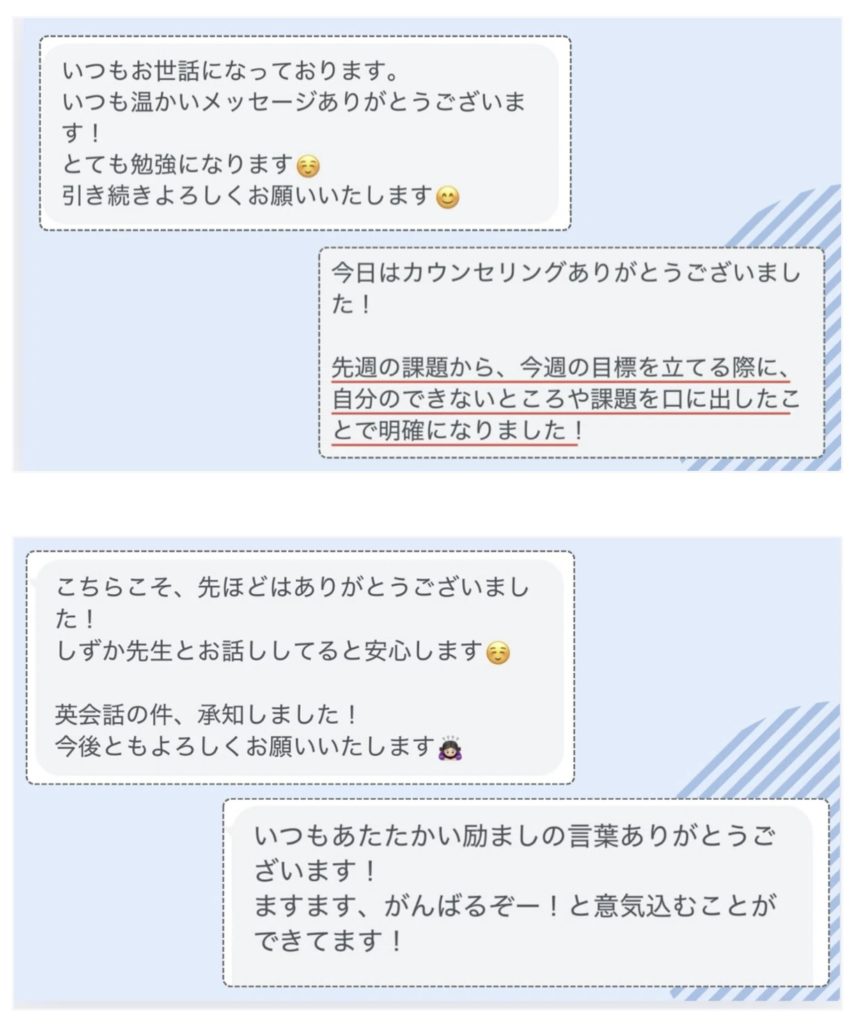 毎日メッセージでやり取りし、つまずいている箇所がないか丁寧にサポートし、