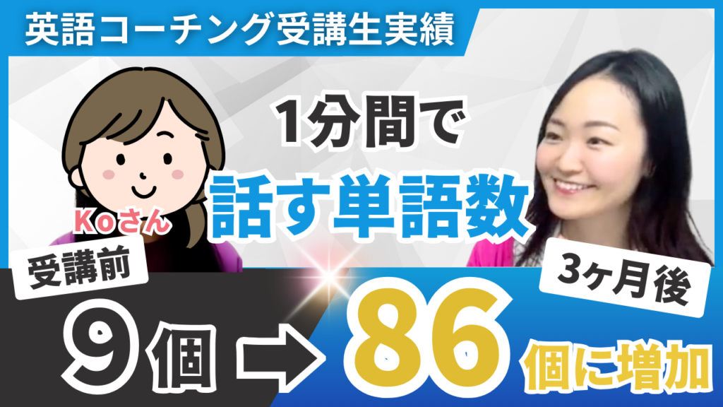 元々英語が苦手で最初は1分間で話せる英単語の量が9個でしたが、3ヶ月で86個までアップするなど、多くの生徒さんの発話量がUPしています。
